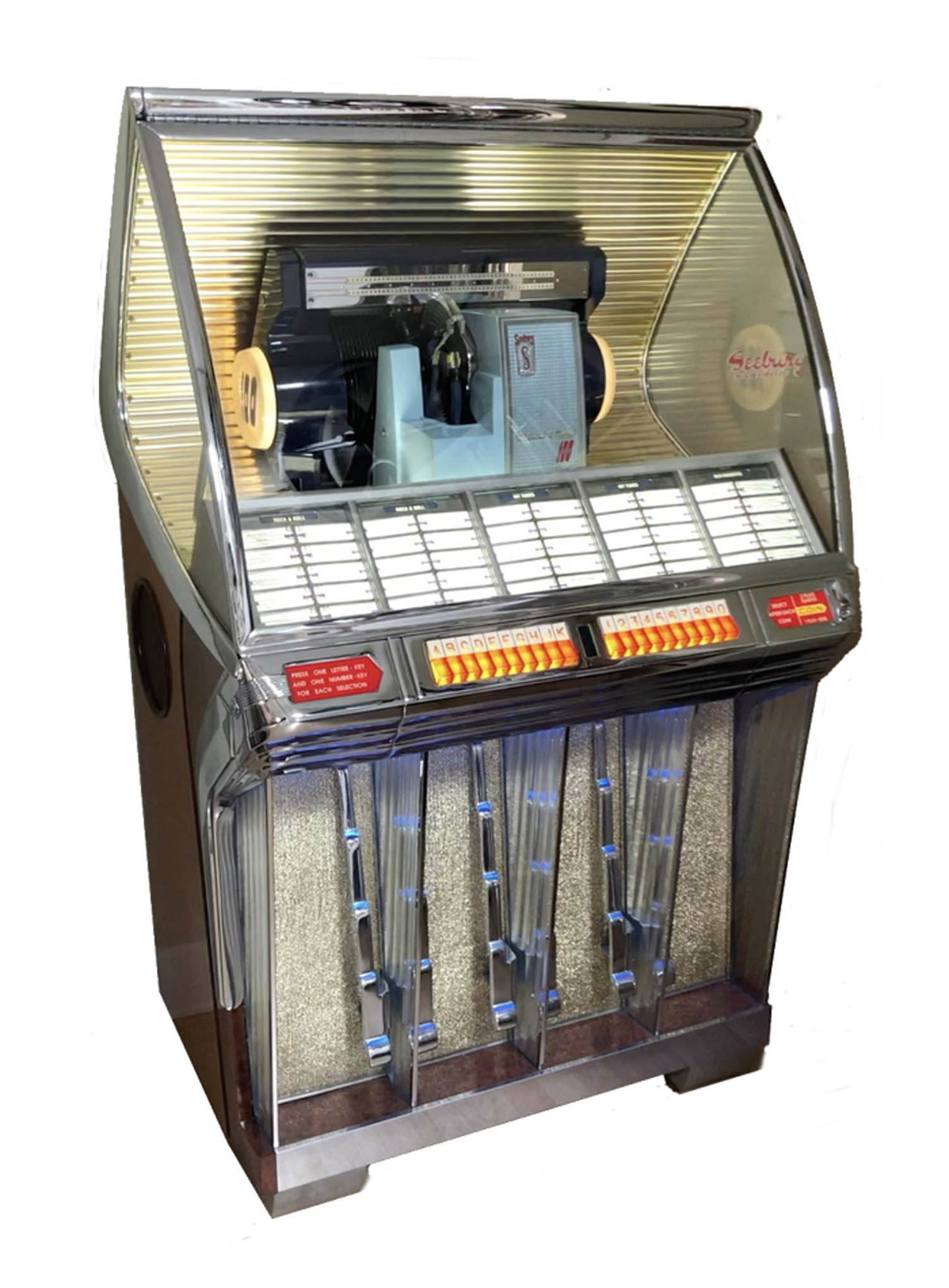 These early-’50s Seeburg models represent a golden era of jukebox design — chrome, glass, warm tube tone, and unmistakable mid-century character. Hugh has a deep personal passion for these models and has spent years perfecting the process of restoring them to their original beauty.
